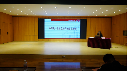 换届成立大会结束后,随即开展艺术学院党总支书记讲团课暨学生干部培训大会。学院党总支书记张慧以“新时代学生干部的责任与担当”为主题,为全体学生干部开展专题培训。她结合自身工作经验,围绕学生干部的角色定位、能力素养、工作方法等方面进行深入讲解,引导学生干部明确工作方向,掌握工作技巧,提升综合素养,鼓励大家以昂扬的姿态迎接新挑战,在服务同学、奉献学院的过程中实现自我成长。