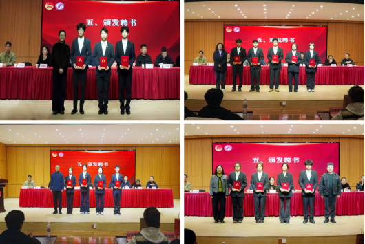 随后,第十六届团总支学生会执行主席伏张荣作工作总结报告。艺术学院党总支副书记肖剑宣读《艺术学院关于第十七届团总支学生会学生干部聘任的决定》,与会领导老师为新当选的学生干部颁发聘书。新任职的第十七届团总支副书记席炳旭、学生会执行主席汤乐天先后作表态发言。