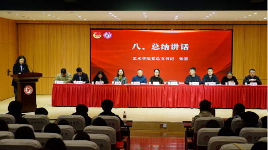 艺术学院党总支书记张慧作总结讲话。她对第十六届学生会成员的辛勤付出表示衷心感谢,对新任职的学生干部提出三点要求:一是要坚定理想信念,筑牢思想根基,自觉践行社会主义核心价值观;二是要强化责任意识,提升服务能力,切实为同学办实事、解难题;三是要注重团结协作,锤炼优良作风,树立学生干部的良好形象。她希望全体学生干部以此次换届为新起点,砥砺前行、锐意进取,推动学院学生工作再上新台阶。