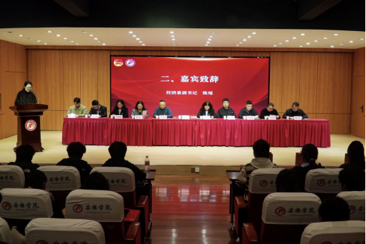 大会第一阶段为艺术学院第十七届团总支学生会换届成立大会。伴随着庄严的《中华人民共和国国歌》旋律,大会正式拉开帷幕。校团委副书记陈瑶致辞,她对艺术学院第十六届团总支学生会在过去一年中取得的丰硕成果给予高度肯定,向即将履职的第十七届学生干部表示热烈祝贺,并寄语全体学生干部要牢记服务宗旨,锤炼过硬本领,以饱满的热情和务实的作风投身学生工作,助力学院发展与学生成长。