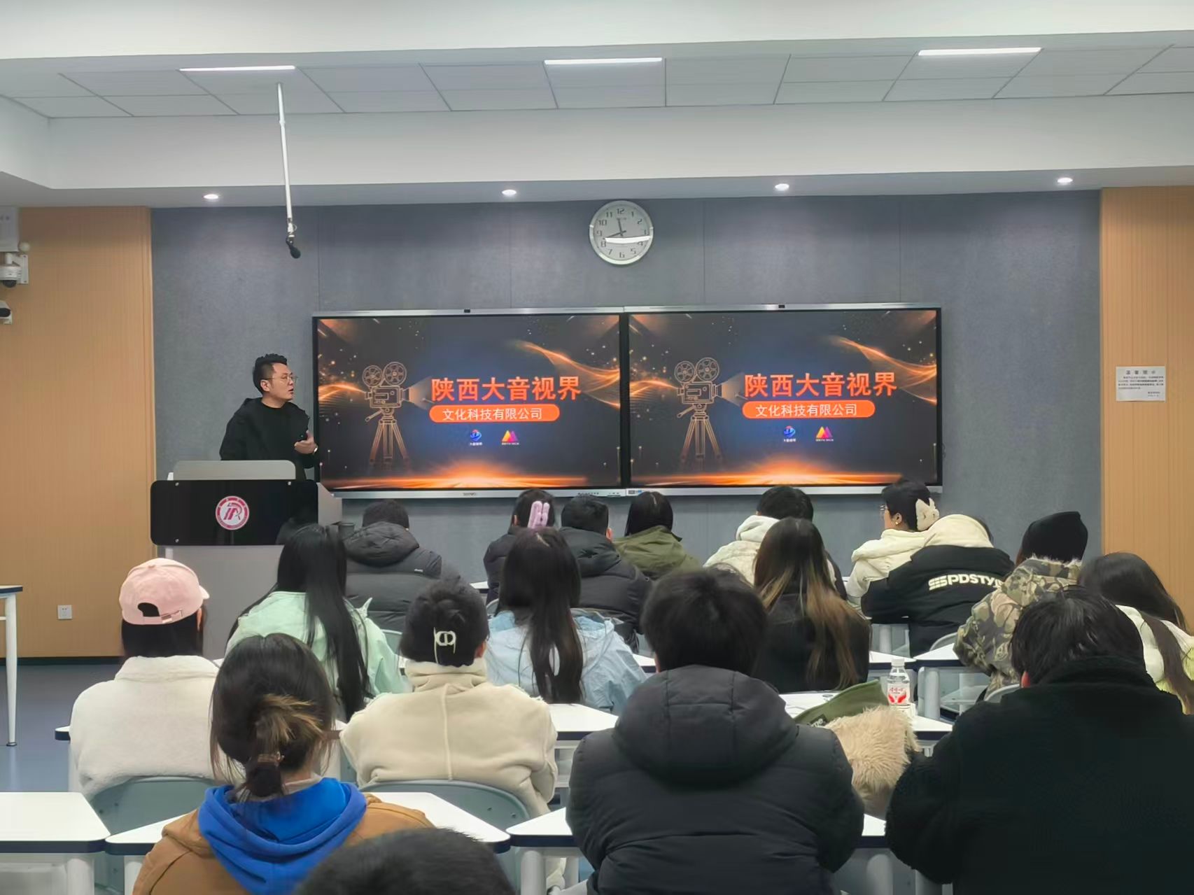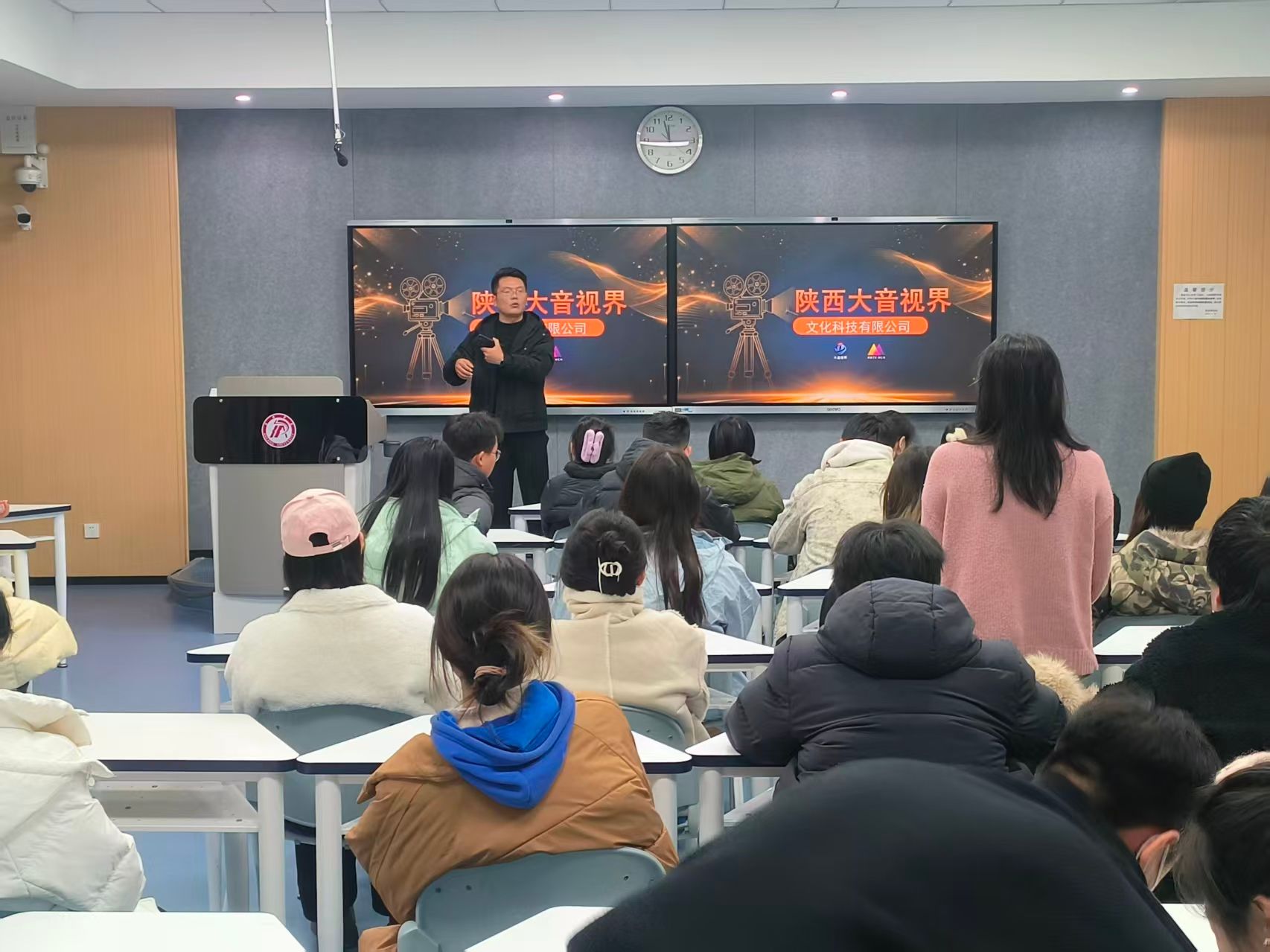 为深化产教融合,搭建艺术人才与文化科技产业精准对接的桥梁,拓宽学子就业渠道,助力高质量就业,近日,陕西大音视界文化科技有限公司招聘宣讲会在艺术学院圆满举办。学院相关专业师生代表齐聚现场,与企业代表展开深度交流。