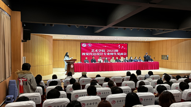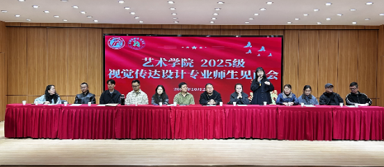 10月22日下午,艺术学院在1401演艺厅举办了2025级新生视觉传达设计专业师生见面会;主要目的在于搭建师生沟通桥梁、助力新生明晰专业方向。参会的有设计专业全体教师、2025级新生。活动由学工办主任邱青晓主持。