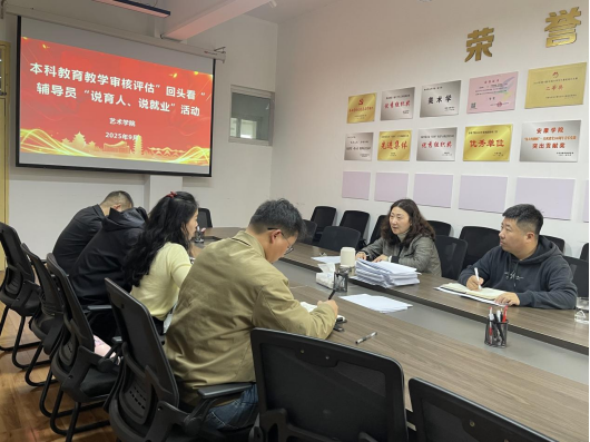 近日,为深化本科教育教学审核评估整改成效,切实提升育人质量与就业服务水平,艺术学院组织开展本科教育教学审核评估“回头看”辅导员说育人、说就业专项活动。参会人员有党总支书记张慧、党总支副书记肖剑以及全体辅导员,活动由张慧主持。