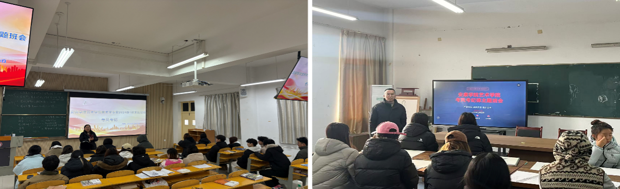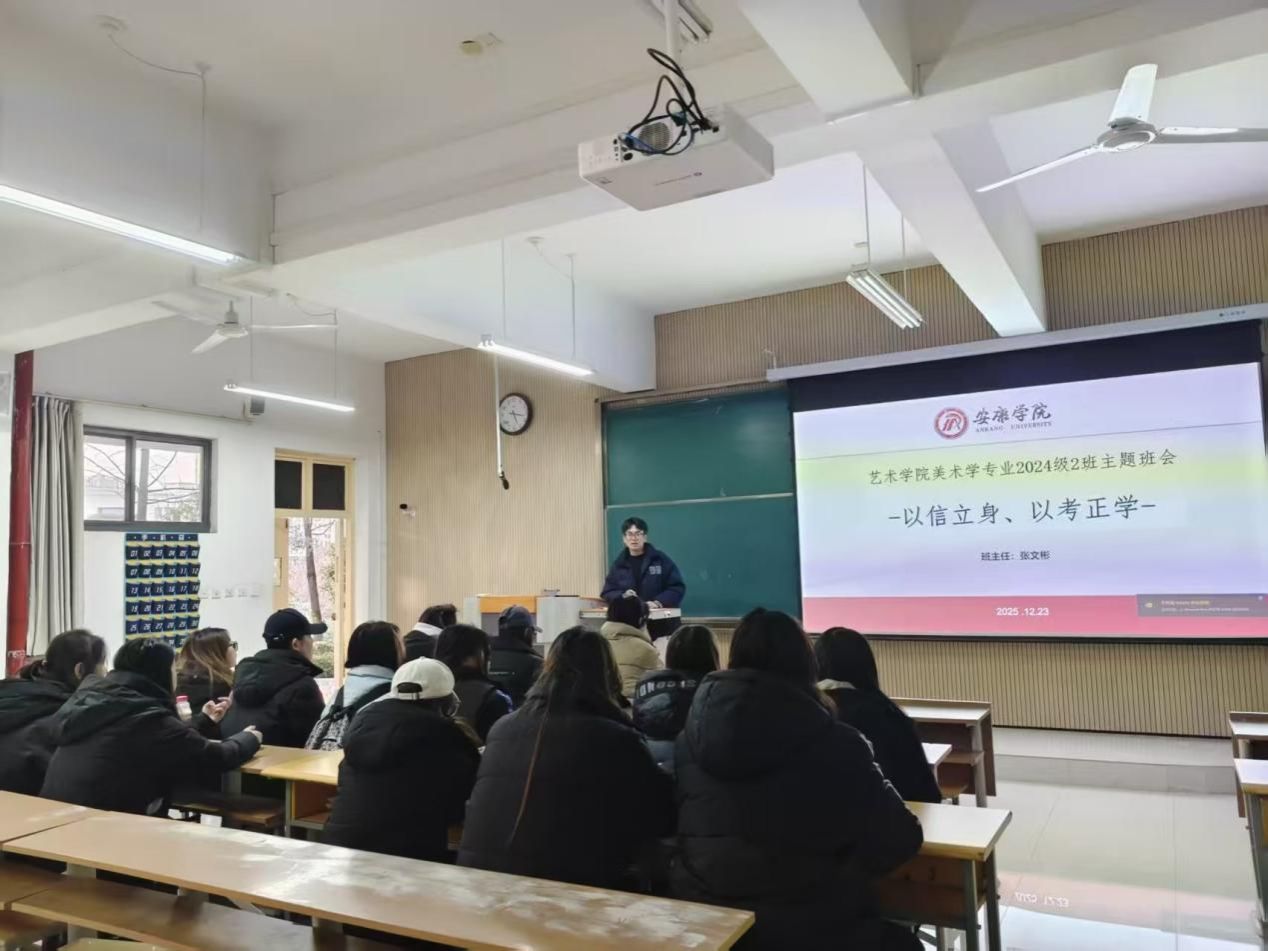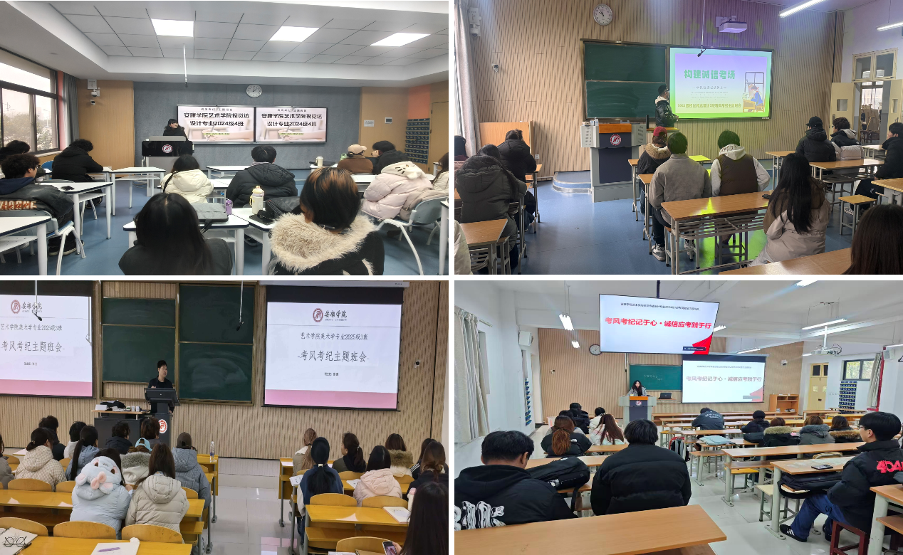 为进一步加强考风考纪建设,营造风清气正的考试环境,艺术学院于近日组织开展考风考纪诚信教育主题班会。学院全体辅导员、班主任深入班级一线,面向全体学生开展系统的诚信考试教育,切实把考试纪律教育抓在平时、落在日常。