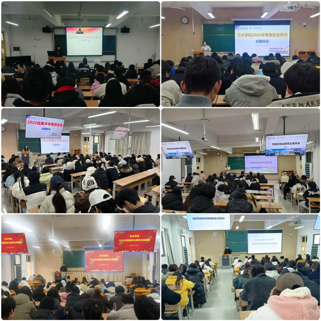 为切实增强学生的安全防范意识,筑牢假期安全防线,近期,艺术学院党总支副书记肖剑、全体辅导员老师分别组织开展2026年寒假安全教育主题班会,全体学生参会。