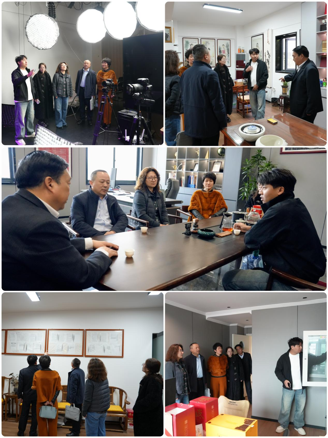 公司负责人赵建山热情接待了学院一行,带领大家参观企业办公区域、直播场地、创作工作室等核心场所,详细介绍了公司发展历程、企业规模、业务布局。该公司深耕传媒领域,业务涵盖广告设计、互联网直播等板块,岗位需求与学院专业高度契合。