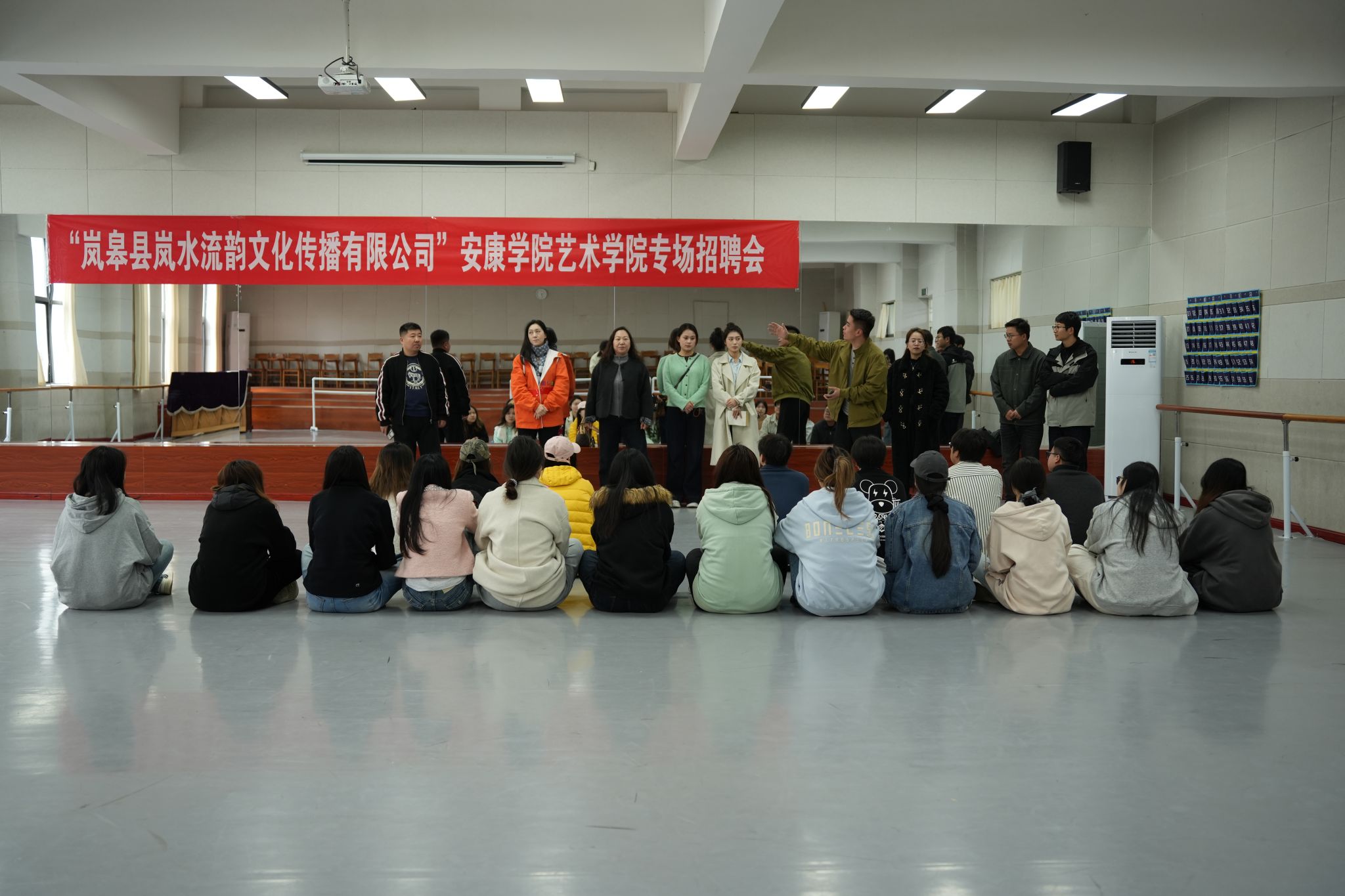 为扎实推进毕业生就业工作,精准搭建校企人才对接平台,助力音乐类专业学子高质量就业,3月26日,岚皋县岚水流韵文化传播有限公司专场招聘会在艺术学院成功举办。本次招聘会面向学院音乐学专业毕业生定向开展,学院党总支副书记肖剑、副院长李磊、毕业班辅导员及应届毕业生参加活动。