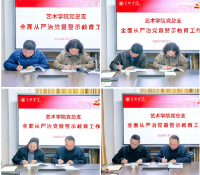 会议传达学习学校2026年全面从严治党暨群众身边不正之风和腐败问题集中整治工作会会议精神;安排部署艺术学院2026年全面从严治党工作计划;党总支书记、院长分别与党总支副书记、副院长,教师党支部书记、系主任代表等相关负责人签订了《艺术学院2026年全面从严治党工作责任书》。