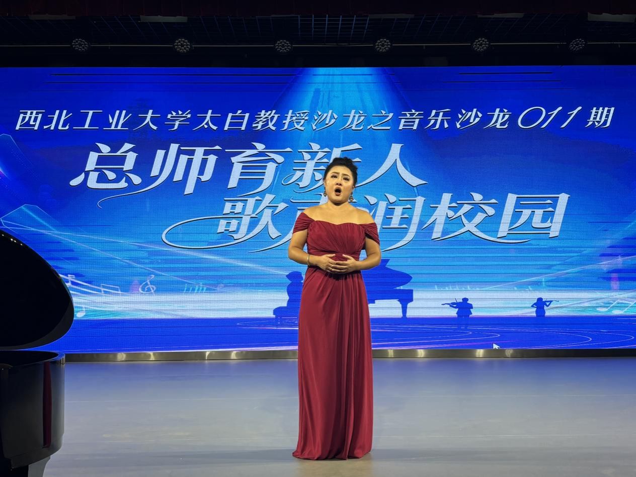 4月18日晚,西北工业大学太白教授沙龙·音乐沙龙第11期——“总师育新人,歌声润校园”专场音乐会在西北工业大学友谊校区举行。我院声乐教师、声乐博士张喻晴受邀参与,献上精彩表演。