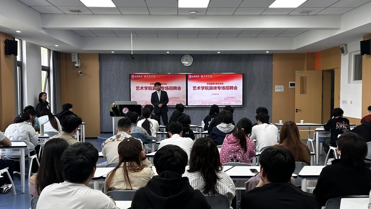 为搭建校企对接平台,拓宽毕业生就业渠道,助力艺术学子高质量就业,4月24日上午,艺术学院隆重举行“艺筑前程 峰启未来”——翼峰专场招聘会。参会的有毕业班辅导员邱青晓、李博及毕业生100余人。招聘会由毕业班辅导员邱青晓主持。